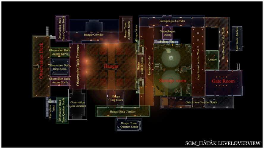 The map is designed to be playable with various different game modes. From team-based mission-typed game modes to simple death matches. Certain parts of the environment may differ depending on the currently played game mode, to ensure that its layout still fits the current gameplay needs which leads to a better experience for the players.